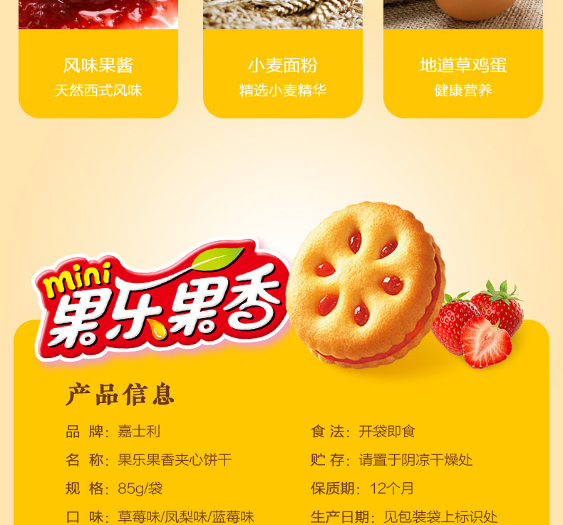 嘉士利果乐果香草莓味夹心饼干85g*2包